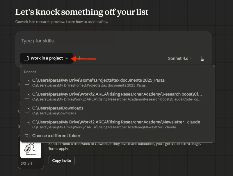 The more specific your instructions, the less you’ll need to correct Claude later. This is the same principle behind how we are building Research Boost. The platform will pre-load the context for each section of your manuscript (your study details, your target journal’s conventions, the IMRaD structure) so the AI doesn’t start from a blank slate every time. Best Research Use CasesManuscript Drafting Workspace. Upload your draft, statistical output, study protocol, and target journal guidelines. Every chat in this Project can reference all of them. Ask Claude to rewrite your Results section in one chat. Draft a response to Reviewer 2 in the next. Claude already knows your study, your data, your journal. No setup required. Grant Writing Hub. Upload your specific aims, preliminary data, and the funding announcement. Write instructions like: “Help me write NIH-style grant sections. Keep language precise. Avoid jargon a study section reviewer outside my subspecialty wouldn’t know.” Every conversation starts with your full grant context. Journal Club / Literature Review. Upload 10-15 key papers as PDFs. Now you can ask: “What do these papers collectively say about the effect of X on Y?” and Claude synthesizes across your uploaded library. Teaching and Mentorship. If you supervise trainees, create a Project with your lab’s writing guidelines and examples of well-written sections. When a mentee needs help, open that Project and Claude already knows your standards. You can also ask it to transcribe your lecture recordings into pristinely formatted lecture notes with snapshots from the PPT in the right sections. Bottom lineUse Projects when you’re repeating the same type of task with the same background context. Now, Projects are powerful for conversations. But what happens when you need Claude to work on actual files sitting on your computer? That’s where Cowork comes in. 2. Claude Cowork: Your Desktop Research AssistantWhat It Actually IsCowork is a fundamentally different experience. Instead of uploading files into a cloud-based chat, you point Claude at a folder on your actual computer. Claude reads those files, creates new ones, edits existing documents, organizes your folders, and executes multi-step tasks. The output isn’t text in a chat window. It’s real files that appear in your folder. Word documents, spreadsheets, PDFs, slide decks. Deliverables you can open in Microsoft Office, email to your co-PI, or upload to a journal submission portal. Cowork lives in the Claude desktop app (available on both Mac and Windows now). Setup takes about 10 minutes. The Problem It SolvesHere’s a scenario you know well. You have a folder with 87 PDFs from a literature search. You need to screen them, extract key data points, organize them by theme, and build an evidence table. In a regular chatbot, you’d upload them one by one, copy-paste the output somewhere, and manually compile everything. Days of work. In Cowork, you point Claude at the folder and say: “Read all the PDFs in this folder. For each one, extract the first author, year, study design, sample size, primary outcome, and main finding. Create a spreadsheet with one row per paper. Flag any that don’t meet my inclusion criteria.” Claude does the work. The spreadsheet appears in your folder. You open it in Excel. That’s the shift. Cowork produces real files from real files. How to Set It Up (10 Minutes)1. Download the Claude desktop app from claude.com/download ![]() 2. You need a Pro plan ($20/month) or higher 3. Open the app and click the “Cowork” tab at the top ![]() 4. Select a folder from your computer ![]() 5. Start typing what you want done No terminal. No coding. No GitHub. Pick a folder and talk. How It Actually WorksWhen you give Cowork a task, it doesn’t just answer. It makes a plan first. You’ll see Claude write out what it intends to do, step by step, before it starts. You can review the plan, correct it, and then approve execution. Think of it like getting a proposal from a research coordinator before they start the work. You sign off on the approach first. Then Claude executes while you watch, or go get coffee. Best Research Use CasesLiterature Screening and Data Extraction. Point Cowork at your downloads folder after a PubMed export. Tell it: “Read every PDF. Create a screening spreadsheet with columns for first author, year, title, study design, population, intervention, outcome, and a 2-sentence summary. Highlight duplicates.” Claude reads each paper and builds the spreadsheet. You do the final screening, but the tedious extraction is handled. Building a Formatted Table 1. You have a CSV export from REDCap or SAS. Tell Cowork: “Create a Table 1 comparing Group A vs Group B. Use means (SD) for normal continuous variables, medians [IQR] for skewed variables, and n (%) for categorical. Format it for journal submission.” A Word document or spreadsheet appears in your folder. Not text in a chat window. Manuscript File Management. Your folder is a mess. Draft_v3_FINAL_FINAL_revised_ACTUAL.docx. Tell Cowork: “Organize this folder. Rename files consistently. Create subfolders for drafts, figures, supplementary materials, reviewer correspondence, and references. Move everything to the right place. Summarize what you did.” Minutes later, your folder is clean. Pro Tip: If you feel nervous about Claude messing it up or deleting your files, start with your downloads folder . Response to Reviewers. Point Cowork at a folder containing your reviewer comments and revised manuscript. Tell it: “Draft a point-by-point response. For each reviewer comment, quote them, summarize what we changed, and reference the page and line numbers in the revised draft.” Claude cross-references both files and produces the formatted response document. This can be a starting point. Data Cleaning. Messy dataset? Missing values coded as 999, inconsistent date formats, duplicates? Tell Cowork: “Read this CSV